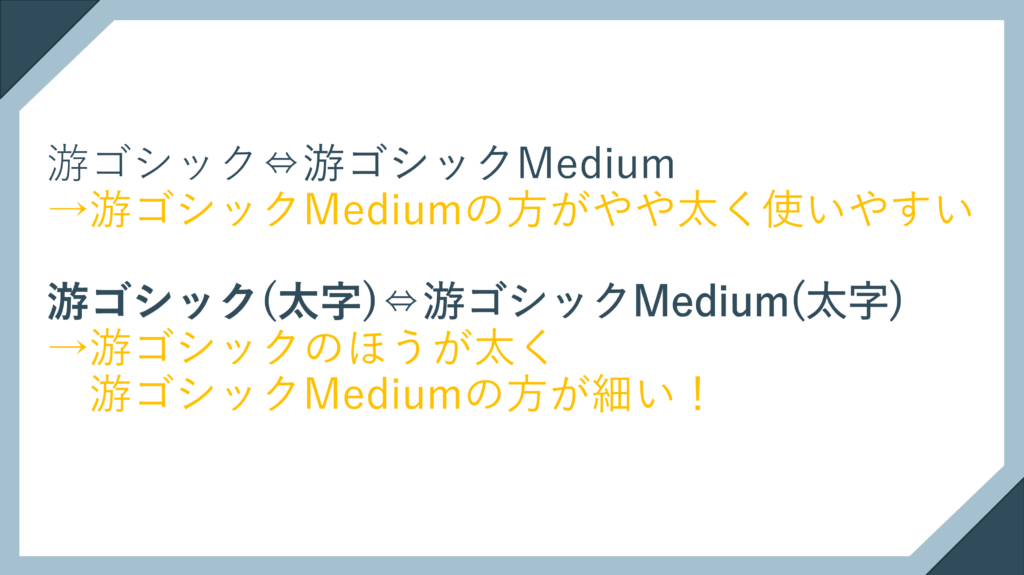 ということでパワポや業務で使うツールを作る際、僕は游ゴシックMedium派でした。